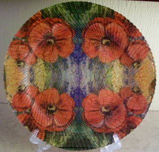 MAIS UM BELO PRATO DE VIDRO TRABALHADO COM A TÉCNICA DO GUARDANAPO.